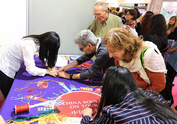 5月19日,在意大利都灵,人们参观意大利都灵国际图书沙龙上的中国展区。都灵国际图书沙龙创办于1988年,堪称意大利最大的图书贸易博览会,本届图书沙龙自5月18日至22日举行。今年中国图书首次跻身都灵国际图书沙龙,由中国图书进出口(集团)总公司承办组团参展,旨在扩大和意大利出版界的交流,同时为2018年意大利博洛尼亚国际儿童书展中国主宾国活动预热。