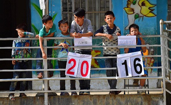 5月22日,同学们在为校园篮球赛计分。近日,广西大化瑶族自治县板升乡弄勇小学举行“迎六一”师生校园篮球赛,二至六年级的男女队共10支队伍参赛,比赛在每天的课外活动进行。